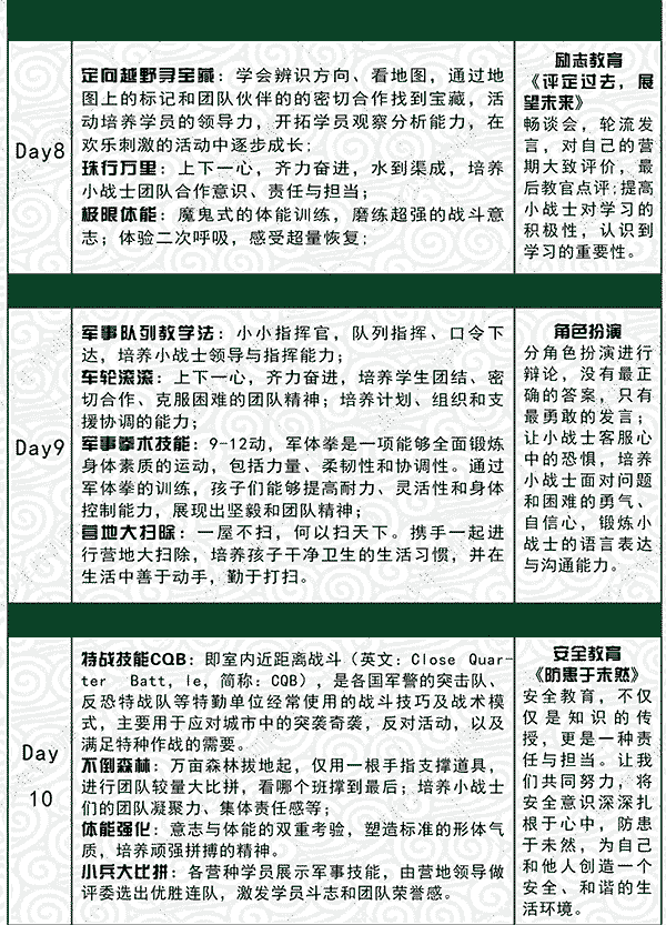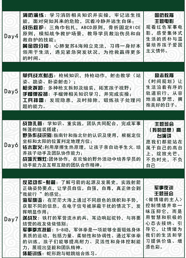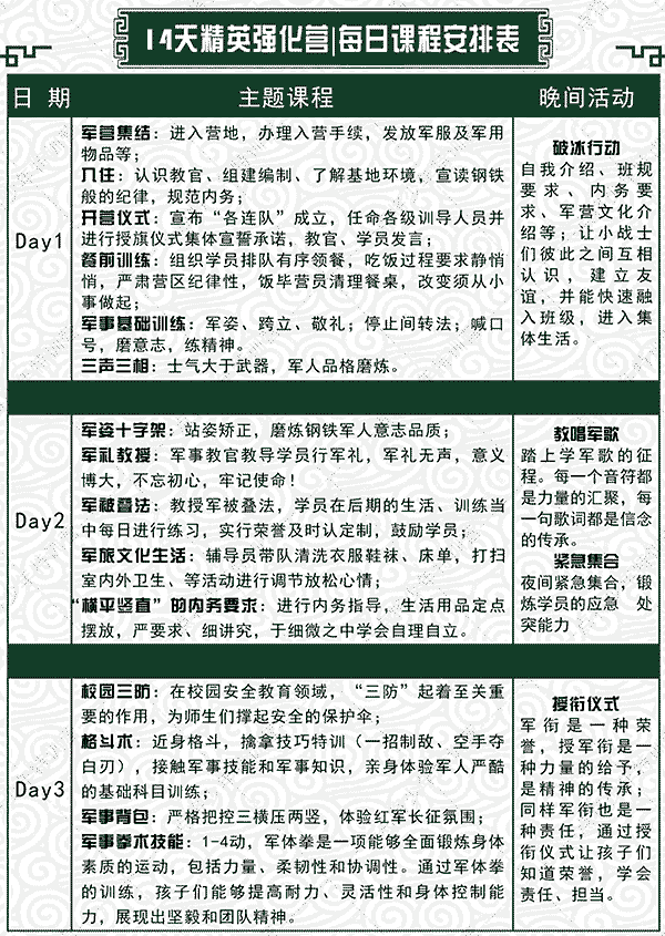 ★由于营期时间过长,具体课程执行情况根据天气情况和班级营员体质情况等外在因素进行相应调整,不做另行通知。