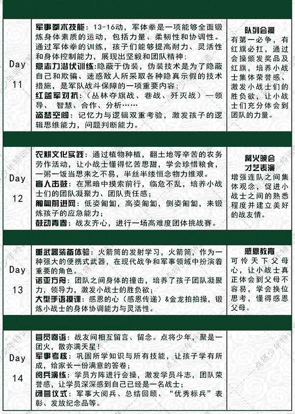 3、开营前一周内取消行程,可无损改期。如需退营,报名费不予退还。