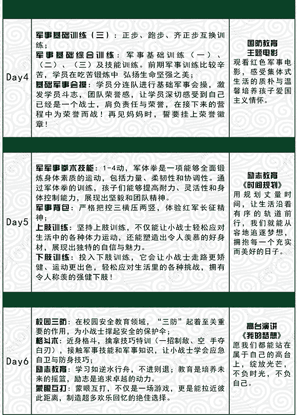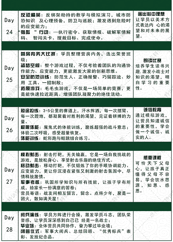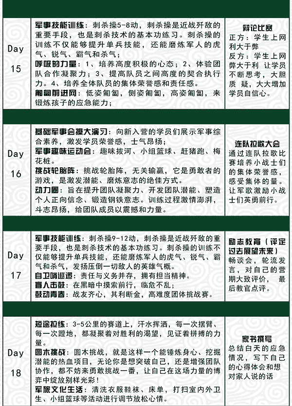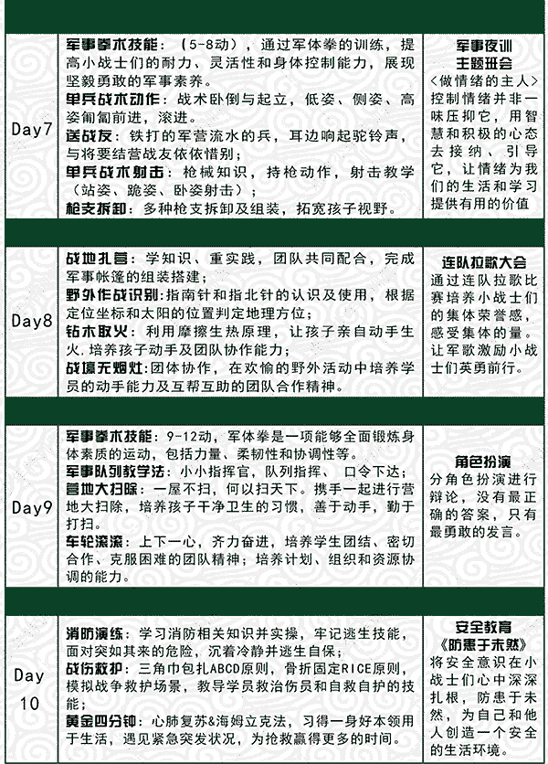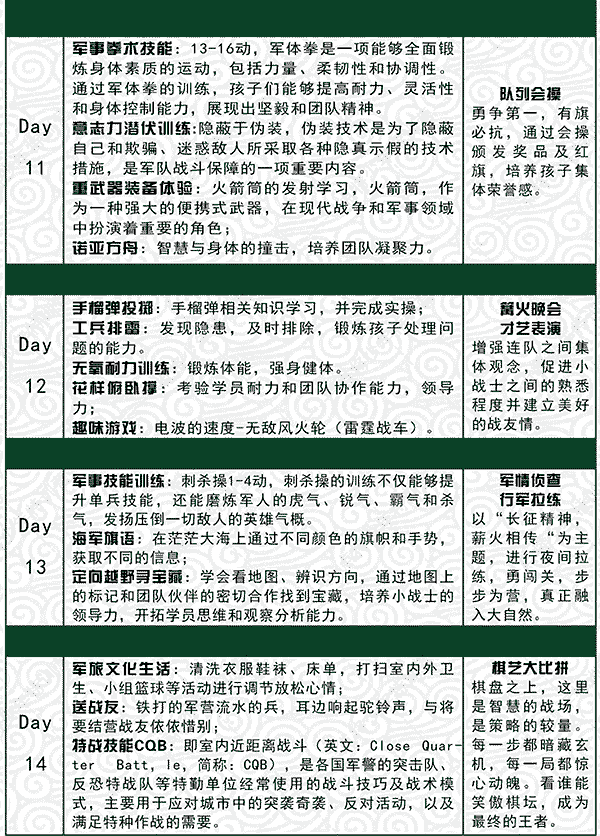 ★由于营期时间过长,具体课程执行情况根据天气情况和班级营员体质情况等外在因素进行相应调整,不做另行通知。