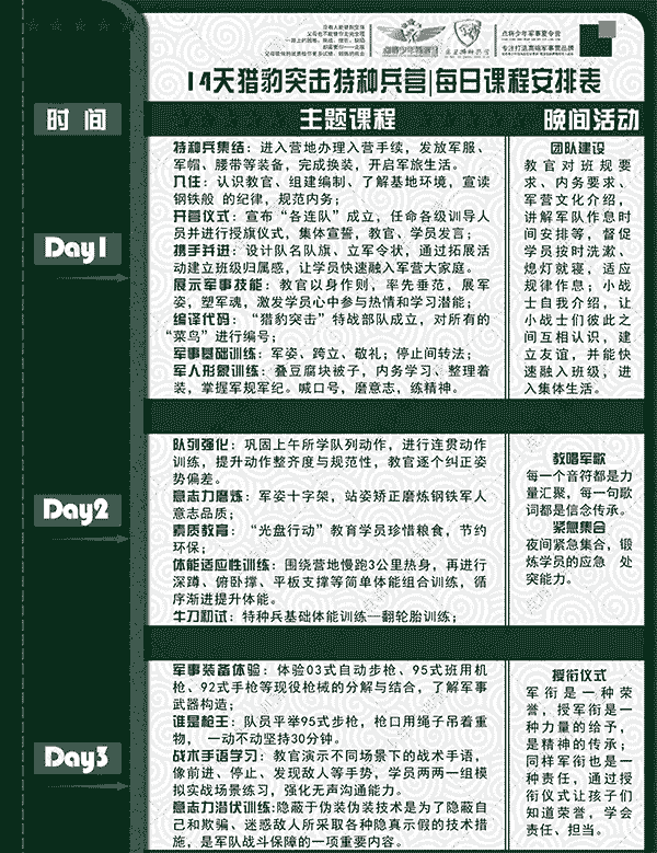 缴订金报名即可预留名额及优惠;开营7天前,可退营(全额退费)或改期