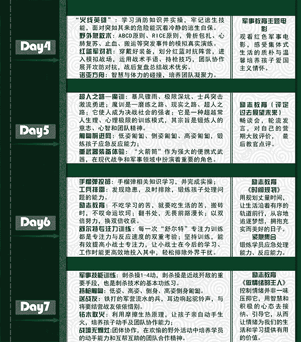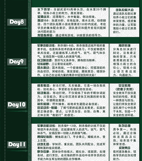 ★由于营期时间过长,具体课程执行情况根据天气情况和班级营员体质情况等外在因素进行相应调整,不做另行通知。