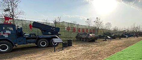 河南省全民国防教育中心郑州综合实践基地是以国防教育培训、实兵模拟对抗、武器装备体验、军事体育竞技、亲子休闲娱乐、军旅文创研发、青少年实践活动为一体的综合性国防教育、劳动教育示范基地。配备宿舍楼、办公楼、多功能会议室、停车场、装备展示园、模拟对抗区、兵娃大乐园等,配备战斗机、坦克、高射炮、火炮、装甲车等海陆空重型退役武器装备。