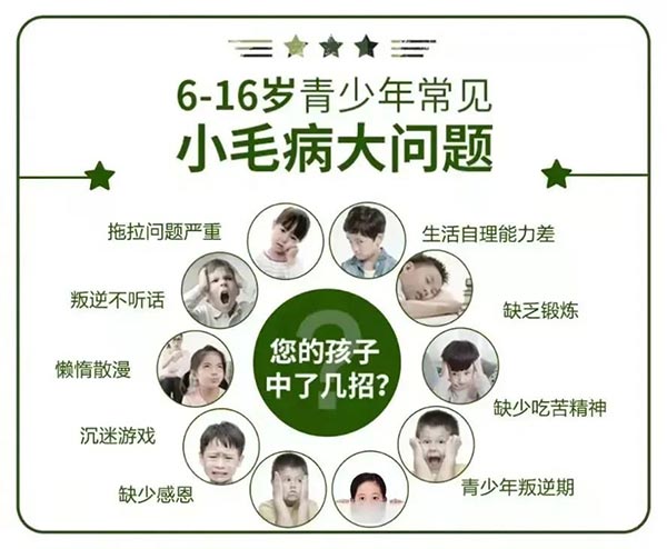 按年龄段进行分班,6-8个营员一个班,3-4个班一个连。师资配比1:6-8名学员配一位教官(24小时陪同,同吃同住同训练同学习同娱乐)。