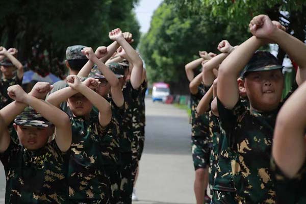 下午:阅兵演练:学员方阵进行会操,激发学员斗志,团队荣誉感,让学员深深感到自己已经是一名战士;闭营仪式:军事大阅兵、总结回顾、“优秀标兵〞表彰.发放纪念品。