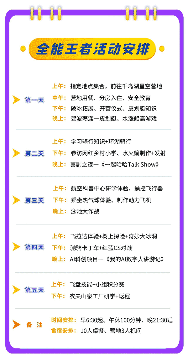 2、实行全封闭管理,设总教练、保障、摄影及各小队老师数名