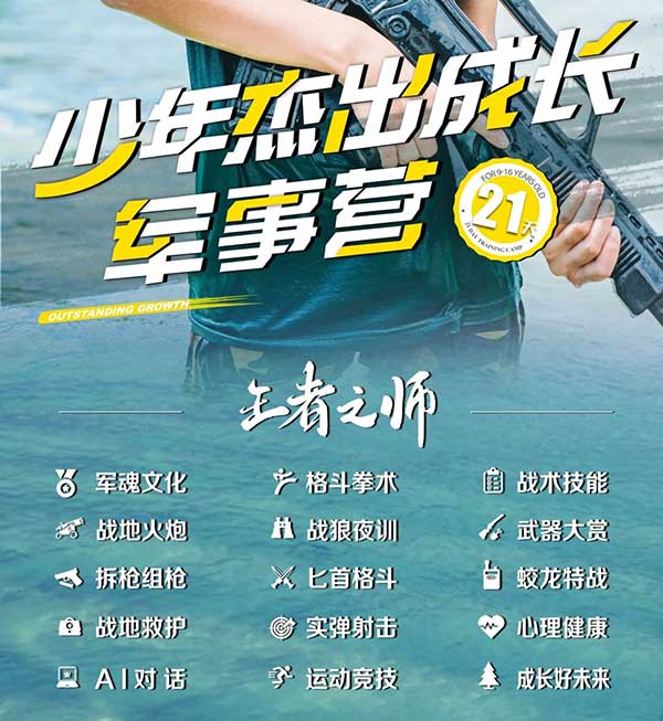 21天重塑习惯,培养学员具有军人作风的精气神,外练体魄内修心智,扎根孝道,传统经典和贵族教育结合,打造杰出好少年。