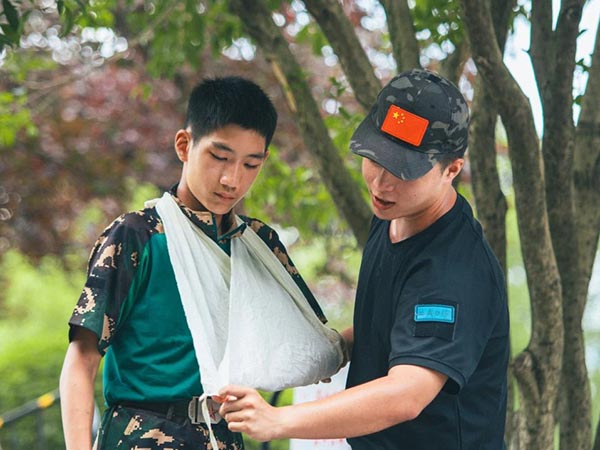 上午:蛟龙特战队—战地救护★三角巾包扎、担架制作、护送伤员、心肺急救