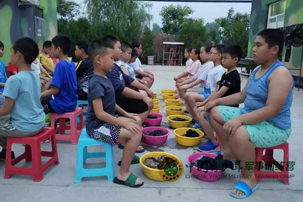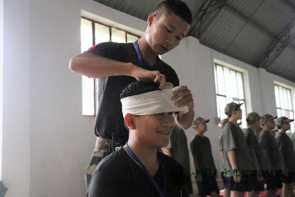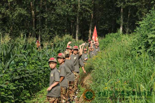 野营拉练:“三横压两竖”打背包、挎水壶、扎腰带负重急行军5—10公里,行走(平原、山地、河流)之间,锻炼营员的应急机动能力,培养吃苦耐劳精神。