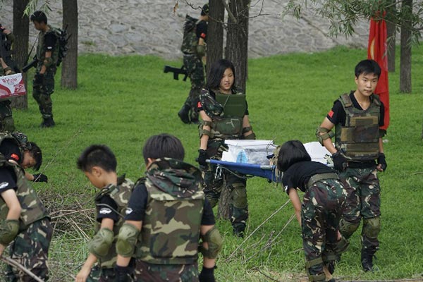 “反恐”特训:1、战壕互换:训练团队协调与默契配合能力;2、穿越电网:不单是考虑某一个人的条件,而是分析团队中每一个人的特点。让营员们深刻体会到团队的力量是巨大的。就像歌曲《团结就是力量》一样;3、投石过河:加强学员对于团队合作精神的认识,营员理解团队之间合作的重要性。帮助学员理解有效的沟通才是合作成功与否的关键;4、反恐教学:遇到恐怖袭击如何自我保护。