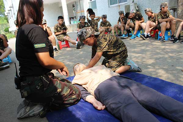 3、营地全封闭式管理,活动场所设置明显安全提示,设置军用医务室,配备有应急军事医疗设备、医药及经验丰富的军医,并配有24小时专职安全监督巡视员;