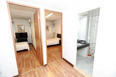 标准住宿·温馨舒适:2人标间,干净整洁,空调、24小时热水,白天12小时打扫卫生,配有生活导师和宿管专员。