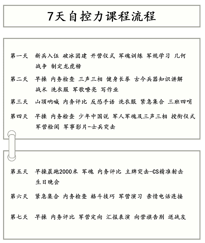 ☆部队服役5年以上,接受过专业青少年素质教育的教练团队;