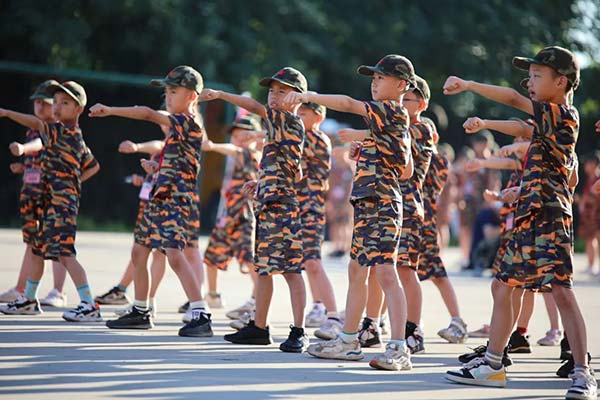 上午:军事训练:纪律性训练,培养孩子的命令意识和执行力,打造军人标兵