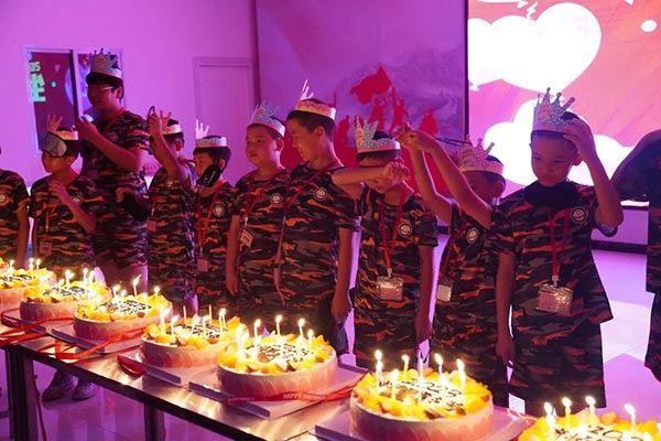 共招5期,每期限招100人,按学员年龄段分大中小营,每个营30人,10人/班(每班配备教官、班主任、摄影一名,与小孩同吃同住)。