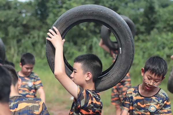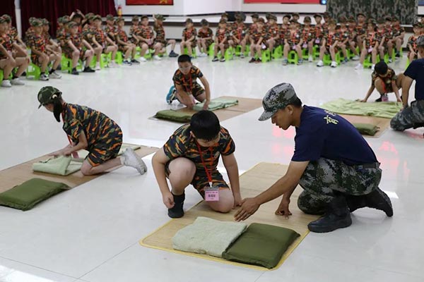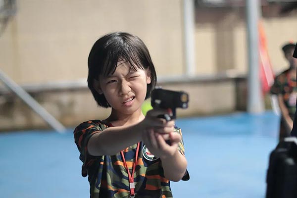 上午:军事训练:纪律性训练,培养孩子的命令意识和执行力