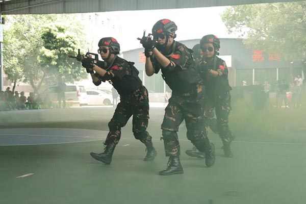 下午:《校园防暴反恐演练》,模拟不法分子闯入校园,应如何自保