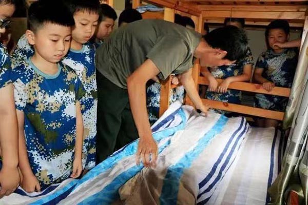军被叠法:现役军官教授军被叠法,学员在后期的营期当中每日选行练习,实行荣誉及时认定制鼓励学员;